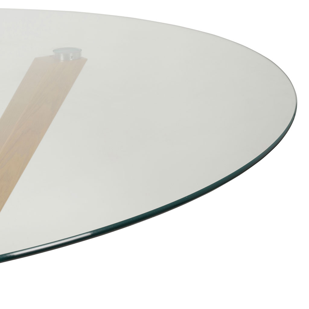 05 56 69 68 67-contact@fabriquedestyles.frTable à manger ronde en verre trempé et métal naturel d119cm - Adela