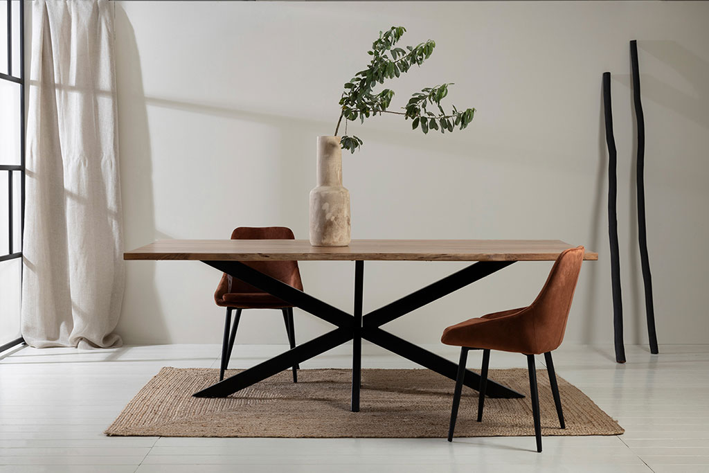 Offrez-vous une pièce maîtresse à la fois fonctionnelle et esthétique avec la table rectangulaire en acacia et pieds en fer noir - Brooklyn.