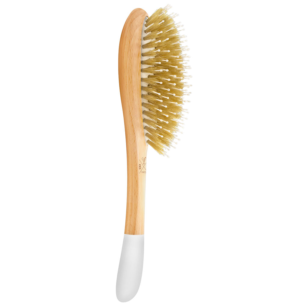 L’association des picots nylon et des soies de sanglier permet de démêler en douceur tout en lissant les cheveux.
