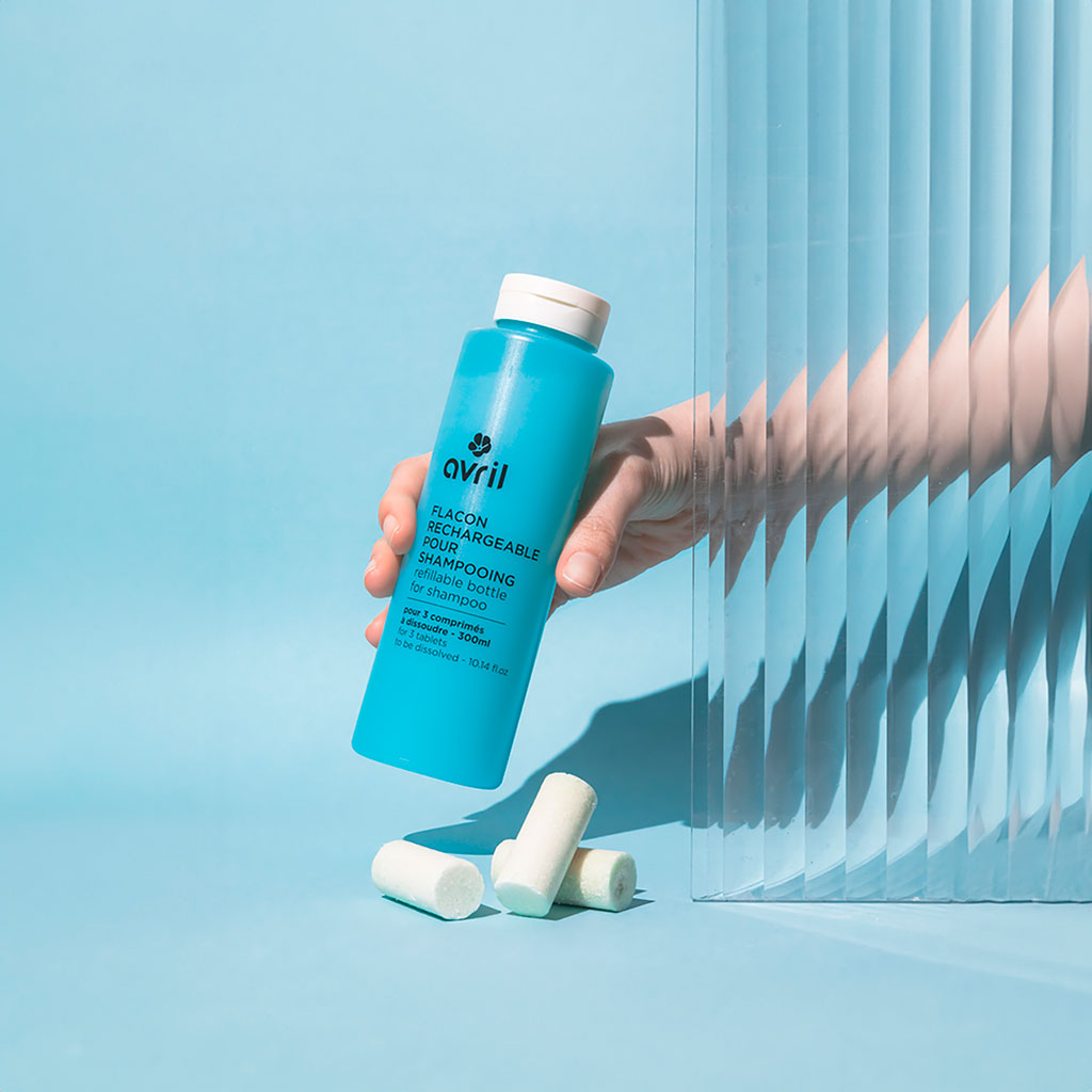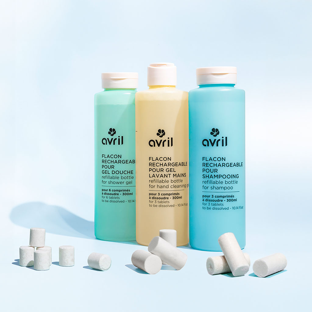 Remplir le flacon pour shampooing Avril d’eau chaude du robinet jusqu'au repère puis ajouter les 3 comprimés.Laisser réagir pendant 12h, bouchon ouvert.