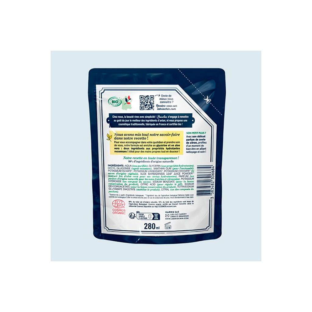 05 56 69 68 67-contact@fabriquedestyles.frRecharge savon liquide mains zeste de citron 280ml - Cosmébio