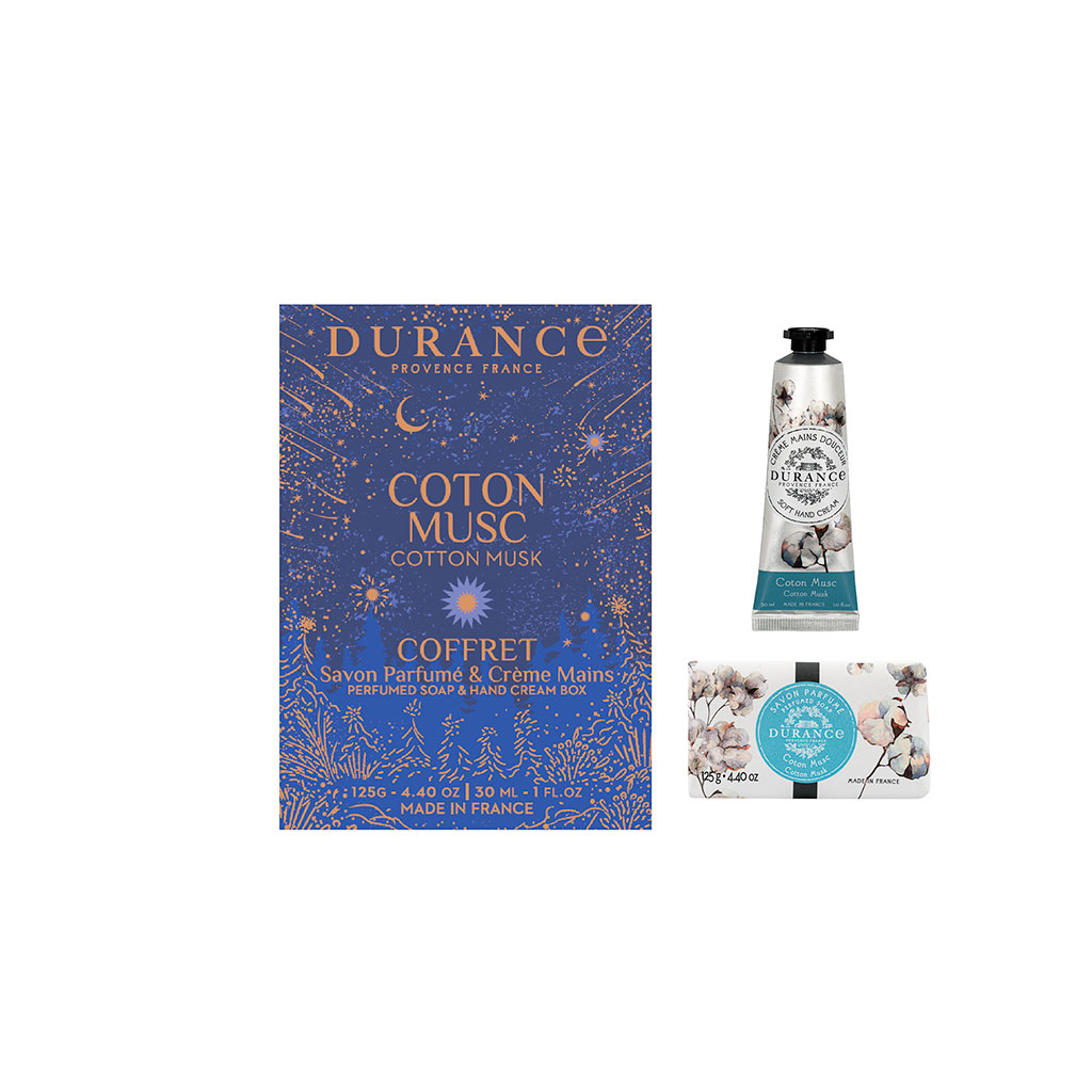 Coffret cadeau savon solide 125g et crème mains 30ml coton musc