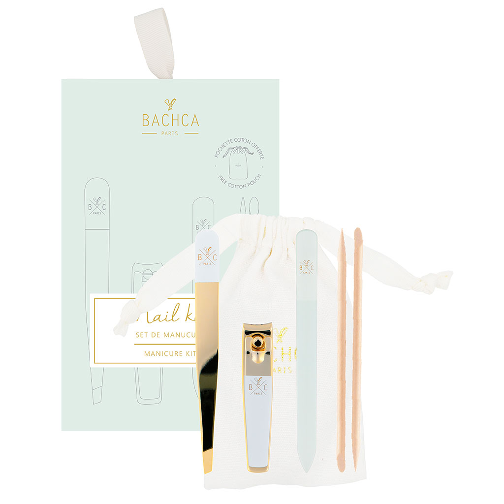 Le set manucure Bachca comprend les 4 outils essentiels pour une manucure toujours parfaite : un coupe-ongle, une pince à épiler, 2 batônnets cuticules et une lime à ongles en verre.