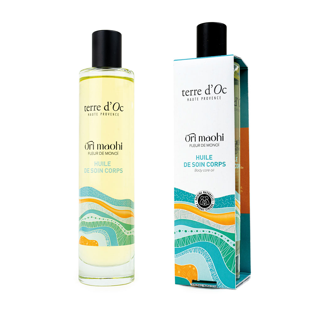 05 56 69 68 67-contact@fabriquedestyles.frHuile soins bio parfumee fleur de monoi - ori maohi 100ml