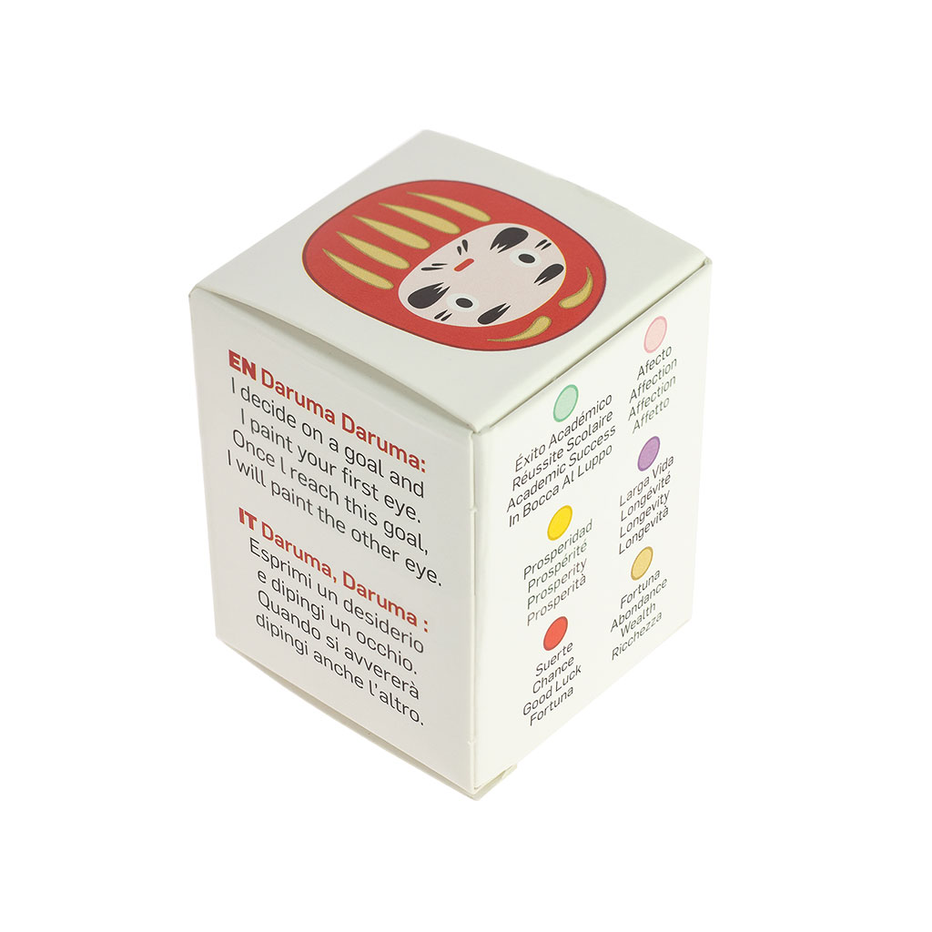 Le Daruma rouge, avec sa forme ronde et ses yeux vides à remplir au gré de vos souhaits et objectifs, vous encourage à poursuivre vos rêves et à ne jamais perdre de vue votre chemin.