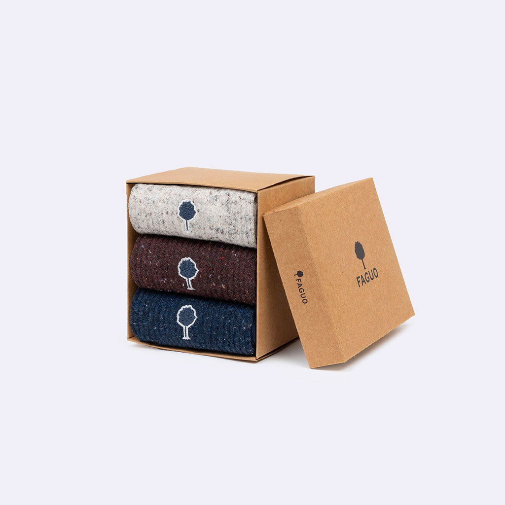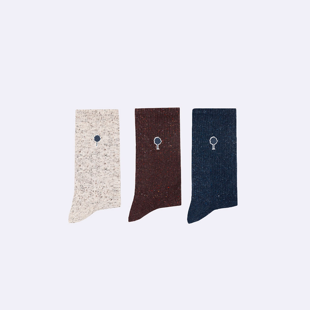 Ce pack de 3 paires de chaussettes FAGUO est réalisé dans un fil en partie recyclé. Mi-hautes, avec une tige en côtes et un intérieur en bouclette elles ont été pensées par notre studio pour apporter un confort optimal.