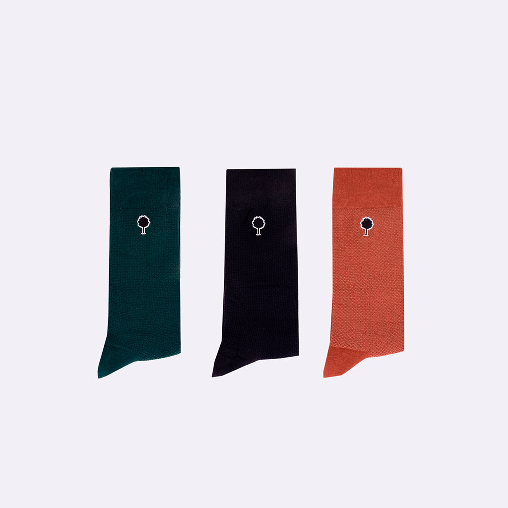 05 56 69 68 67-contact@fabriquedestyles.frChaussettes vegan x3 bleu marine, vert foncé et rose brique 39/42