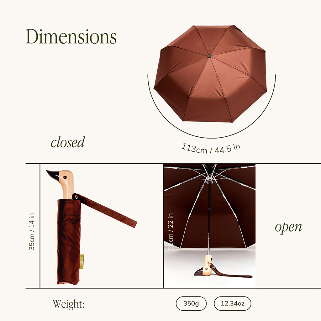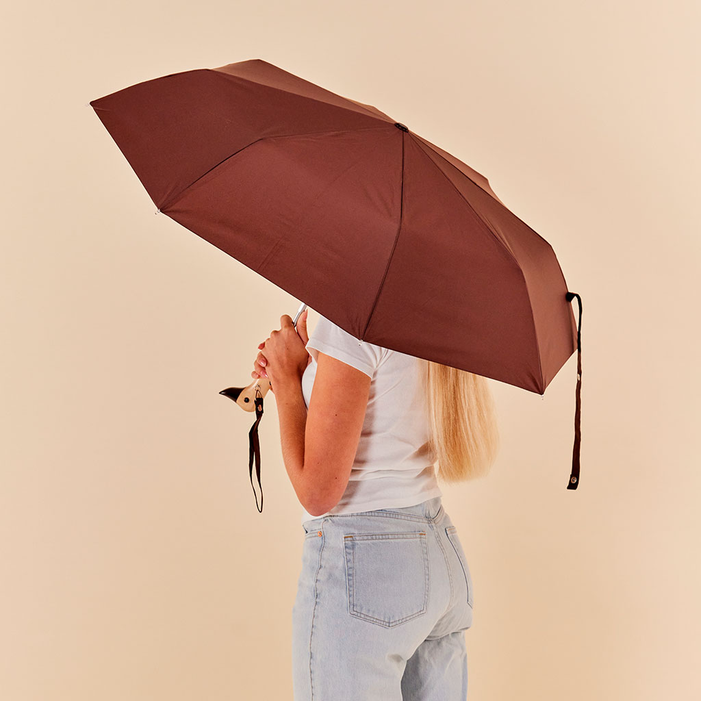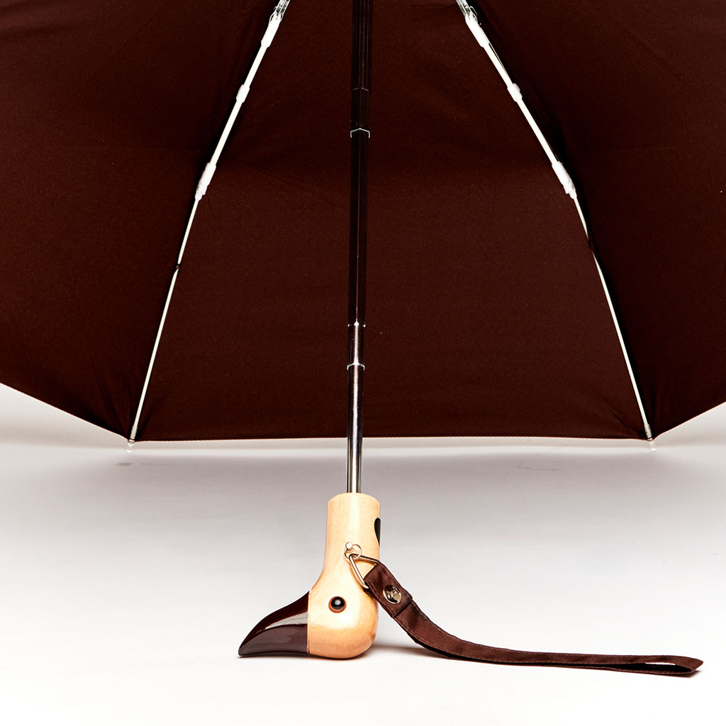 05 56 69 68 67-contact@fabriquedestyles.frParapluie compact manche tête de canard marron expresso