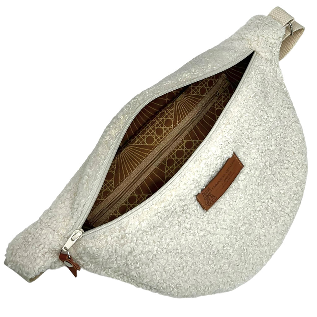 Découvrez le sac banane en bouclette écru, un accessoire à la fois tendance et pratique qui saura répondre à tous vos besoins !