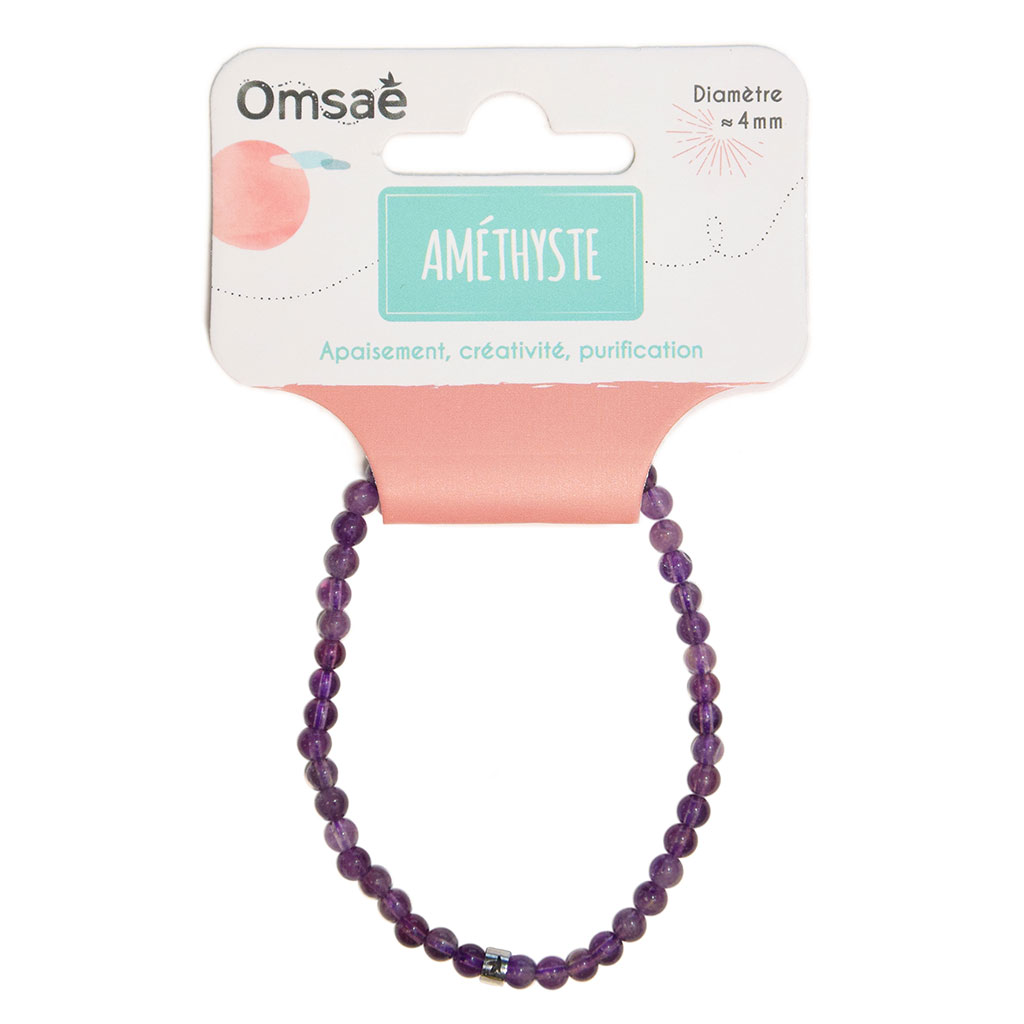 Bracelet élastique composé de perles en pierre naturelle d'améthyste.
