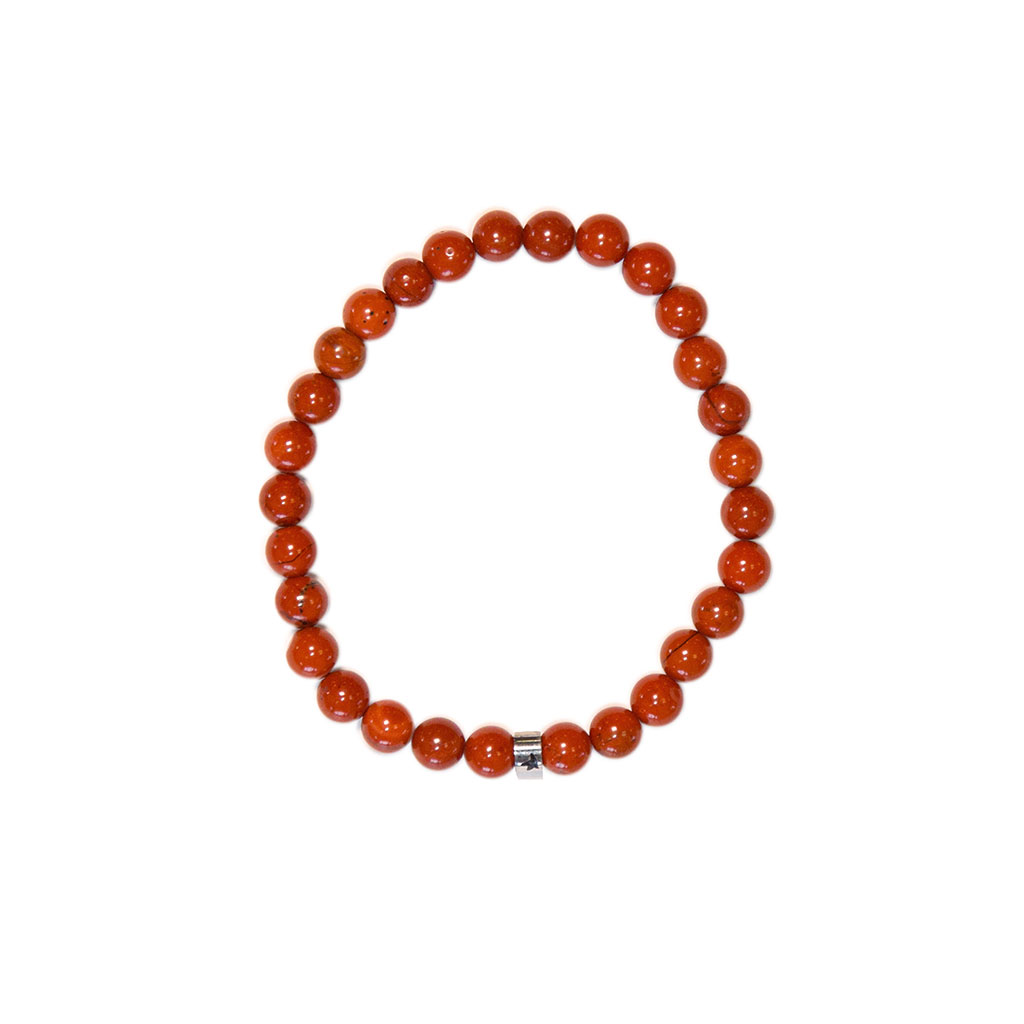 Bracelet élastique composé de perles en pierre naturelle de jaspe rouge.