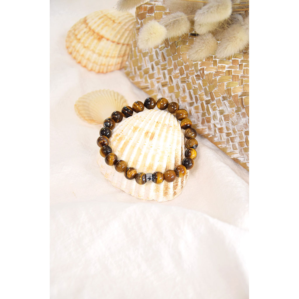 Bracelet élastique composé de perles en pierre naturelle d'oeil de tigre. Pierre de protection, l'œil de tigre crée autour de soi un miroir qui renvoie les énergies négatives. Il aide à dépasser les peurs et redonne confiance en soi.