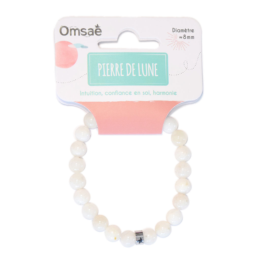 Bracelet élastique composé de perles en pierre naturelle de pierre de lune. Pierre de la féminité, elle symbolise la tendresse et développe la sensibilité et l'intuition. Elle favorise l'acceptation de soi et l'harmonie dans la vie de couple.