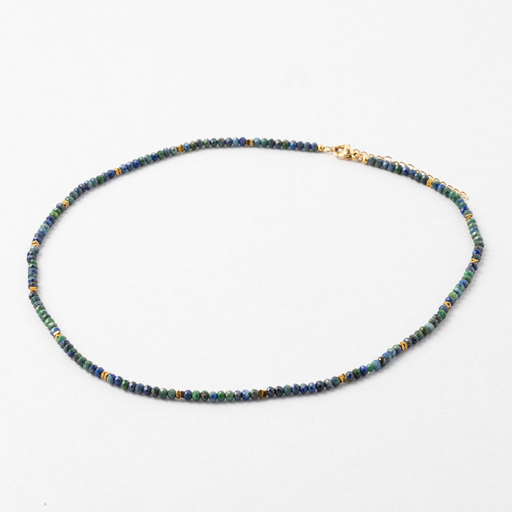 05 56 69 68 67-contact@fabriquedestyles.frCollier en acier inoxydable bleu et vert l40cm