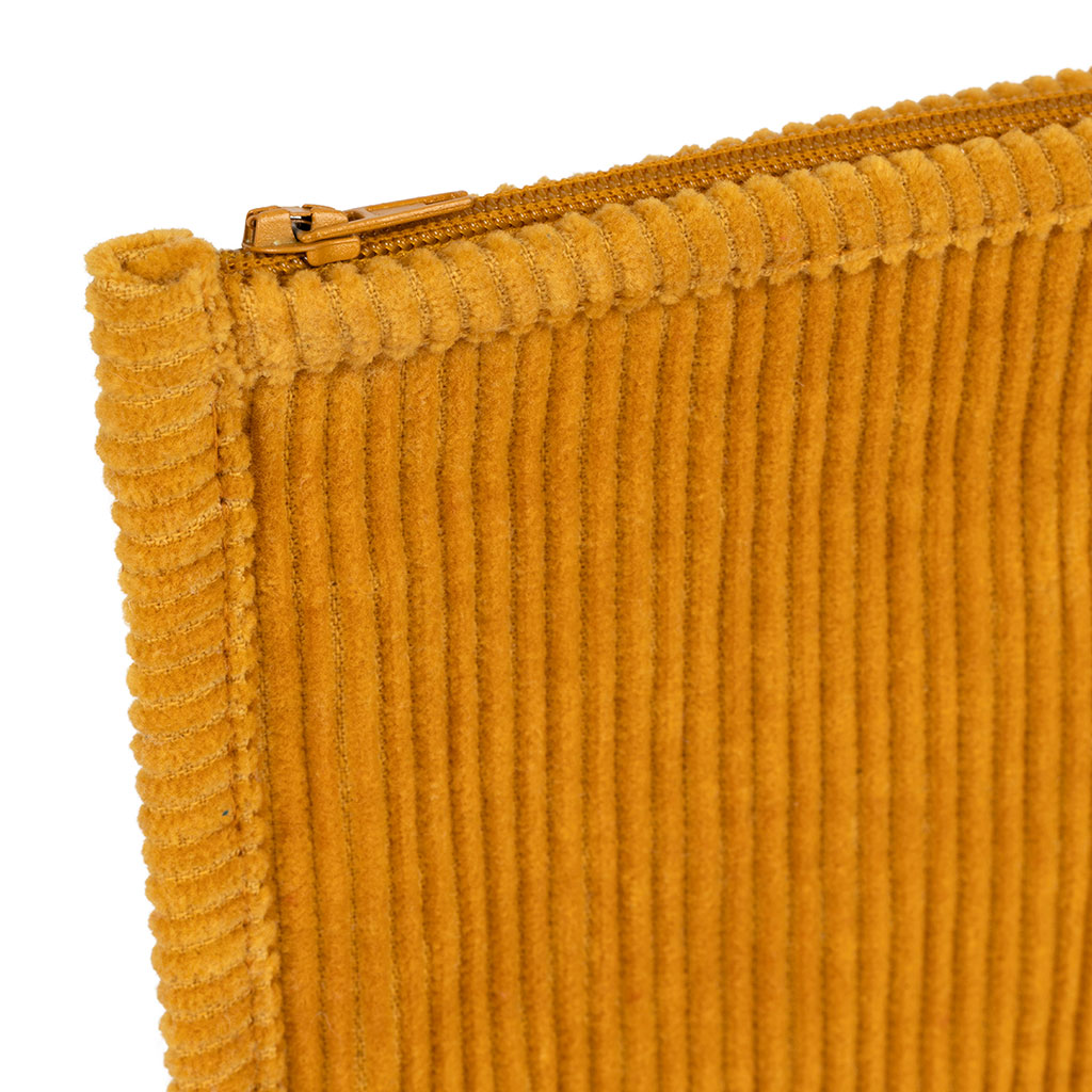 Ajoutez une touche de couleur et de praticité à votre quotidien avec la pochette en coton côtelé moutarde Flaura.