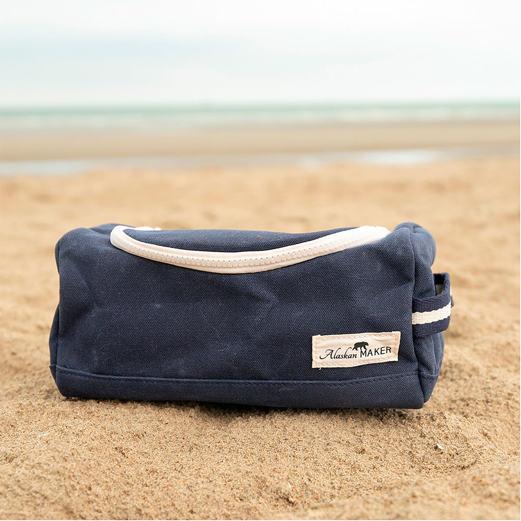 05 56 69 68 67-contact@fabriquedestyles.frTrousse de toilette en tissu bleu marine recyclée - Kenai