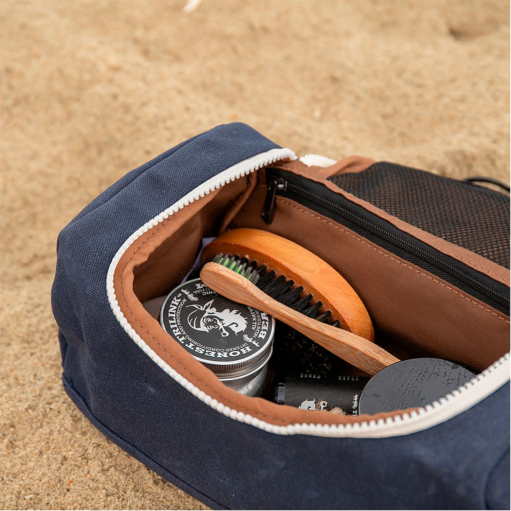 Une trousse de toilette eco responsable et pratique à transporter.