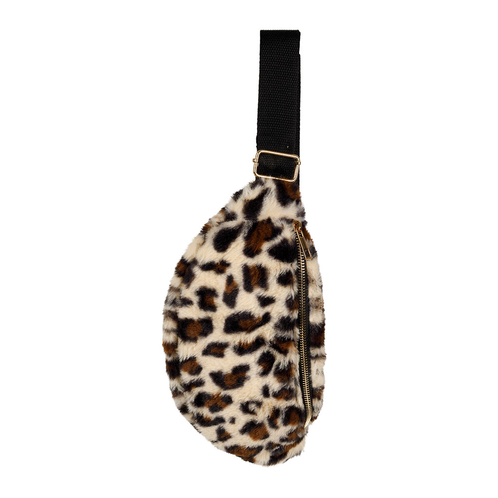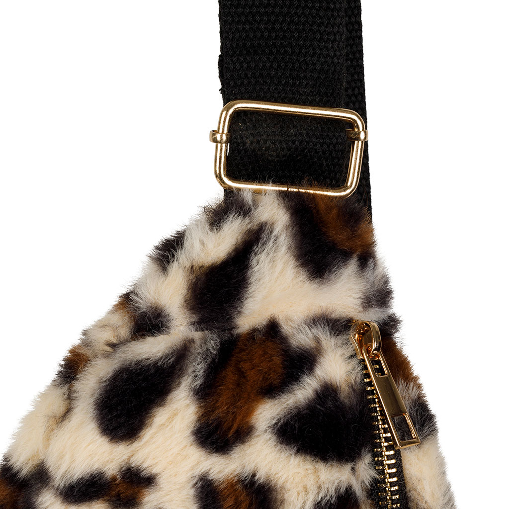 Cette banane en fausse fourrure léopard combine avec audace fonctionnalité et tendance.