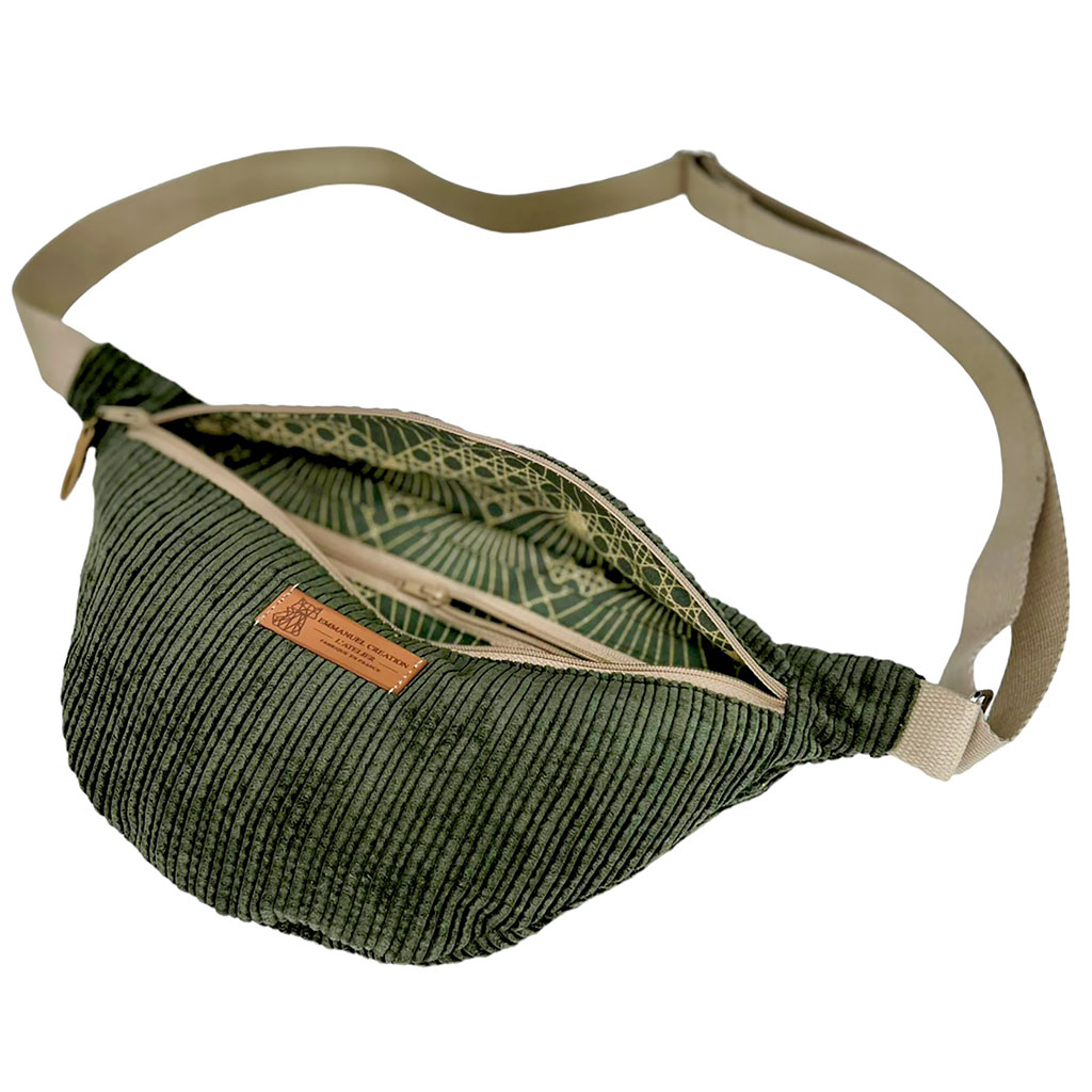 Découvrez notre sac banane en velours kaki, un accessoire à la fois design et pratique qui saura vous séduire.