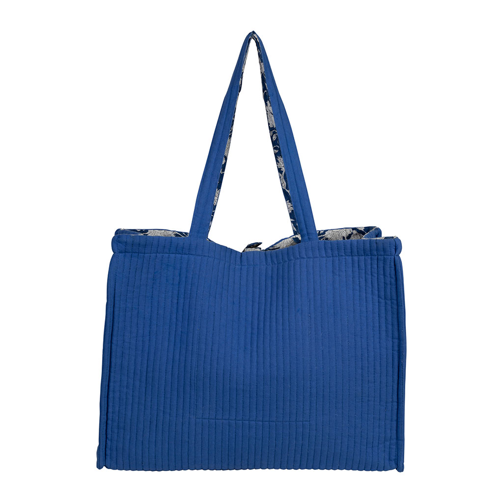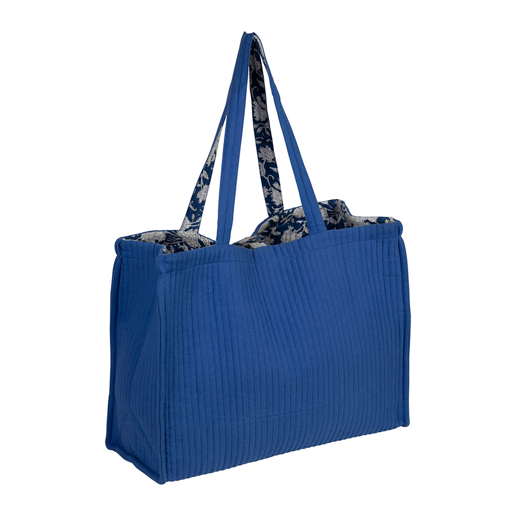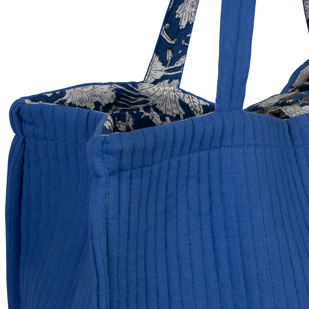 Découvrez le sac en coton matelassé indigo, une pièce unique qui allie praticité et esthétisme.
