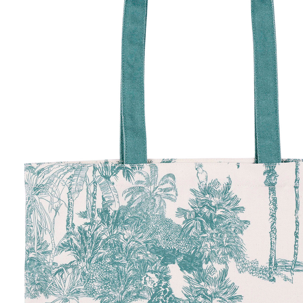 05 56 69 68 67-contact@fabriquedestyles.frSac tote bag en coton écru et palmiers émeraude - Mocoa