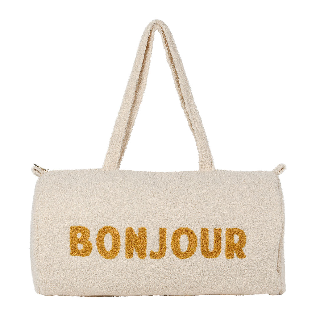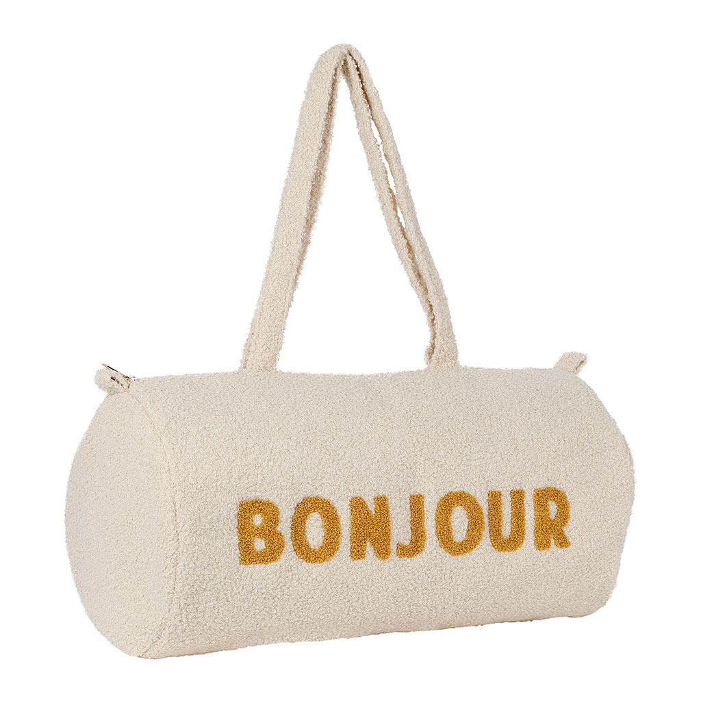 05 56 69 68 67-contact@fabriquedestyles.frSac weekend " Bonjour " en bouclette écru - Funky