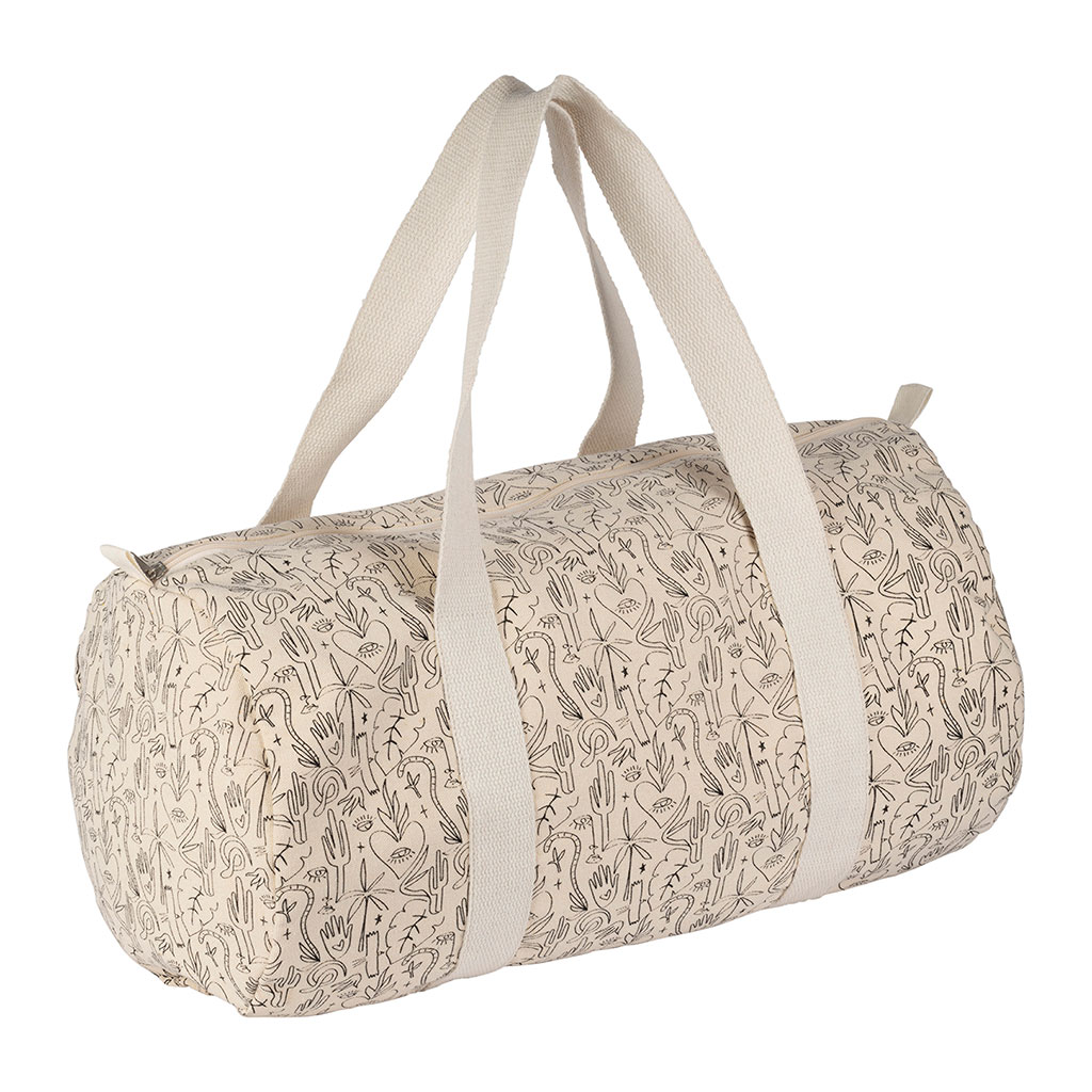 Le sac weekend Tulum, dans ses teintes éclatantes d'écru et de noir, fait bien plus que transporter vos effets personnels.