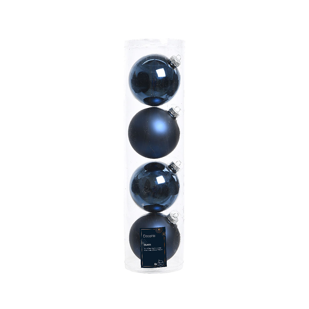 Venez découvrir notre Boite de 4 boules en verre bleu d10cm de la marque Kaemingk à découvrir sur Fabrique de Styles.