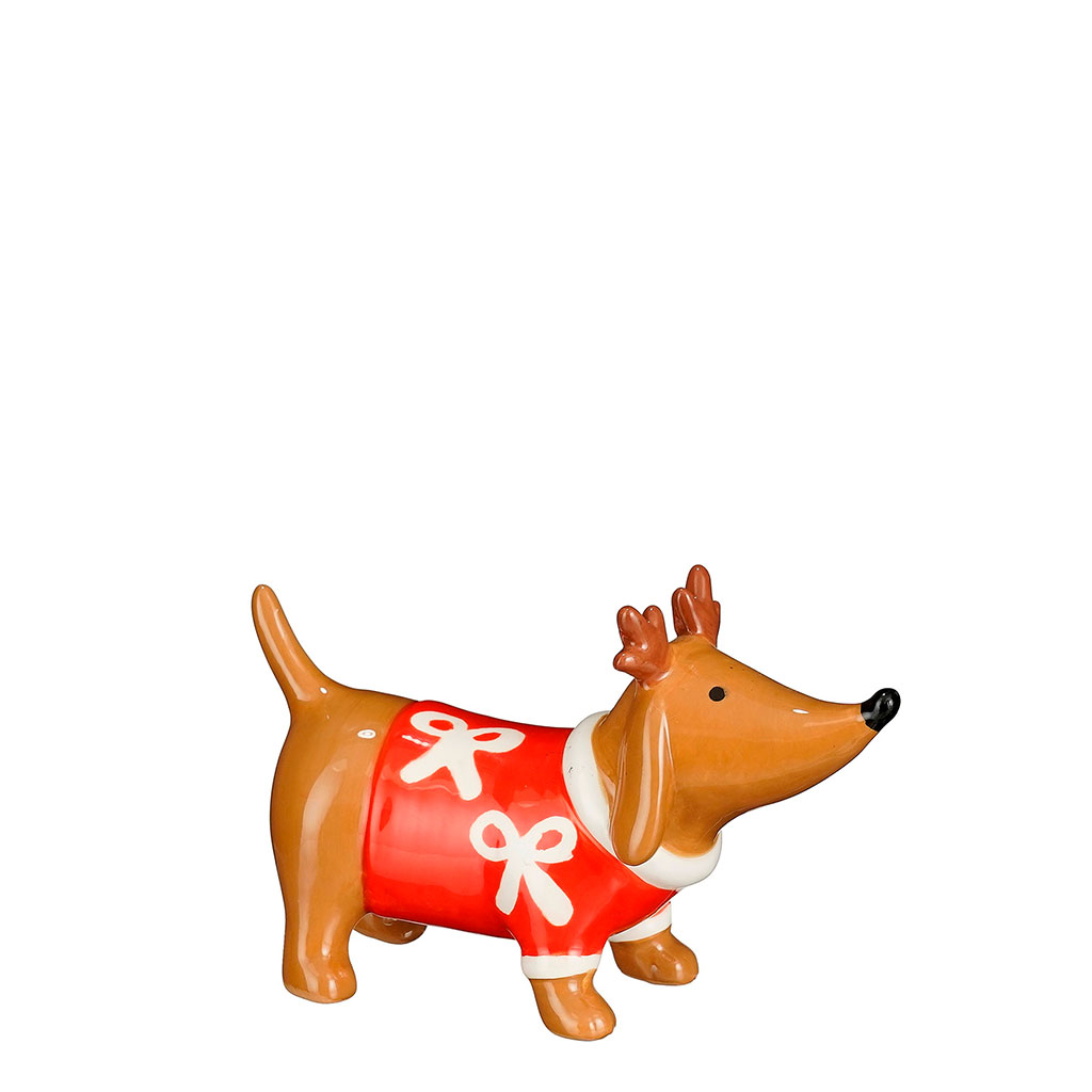 Apportez une touche de gaieté et d'originalité à votre décoration de fête avec cette figurine de chien en dolomite rouge de 10 cm.