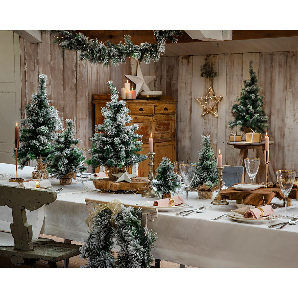 Ce sapin de vacances, idéal pour les petits espaces ou pour apporter une touche festive à diverses pièces de votre maison, est délicatement recouvert d'une fine couche de neige, évoquant la beauté d'une forêt enneigée.