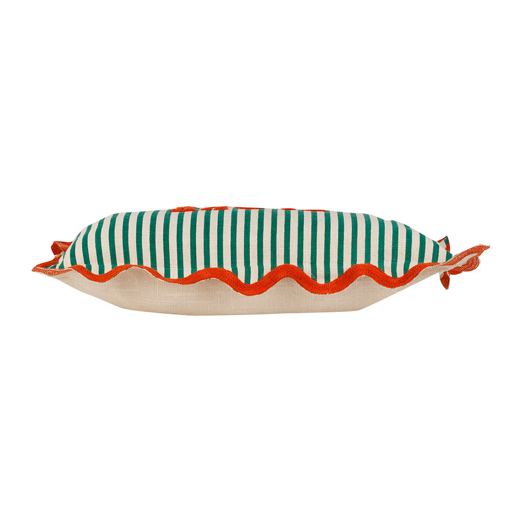 Arborant des rayures vertes et rouges, ce coussin de 50x30 cm est l'accessoire parfait pour rehausser votre salon ou votre chambre.