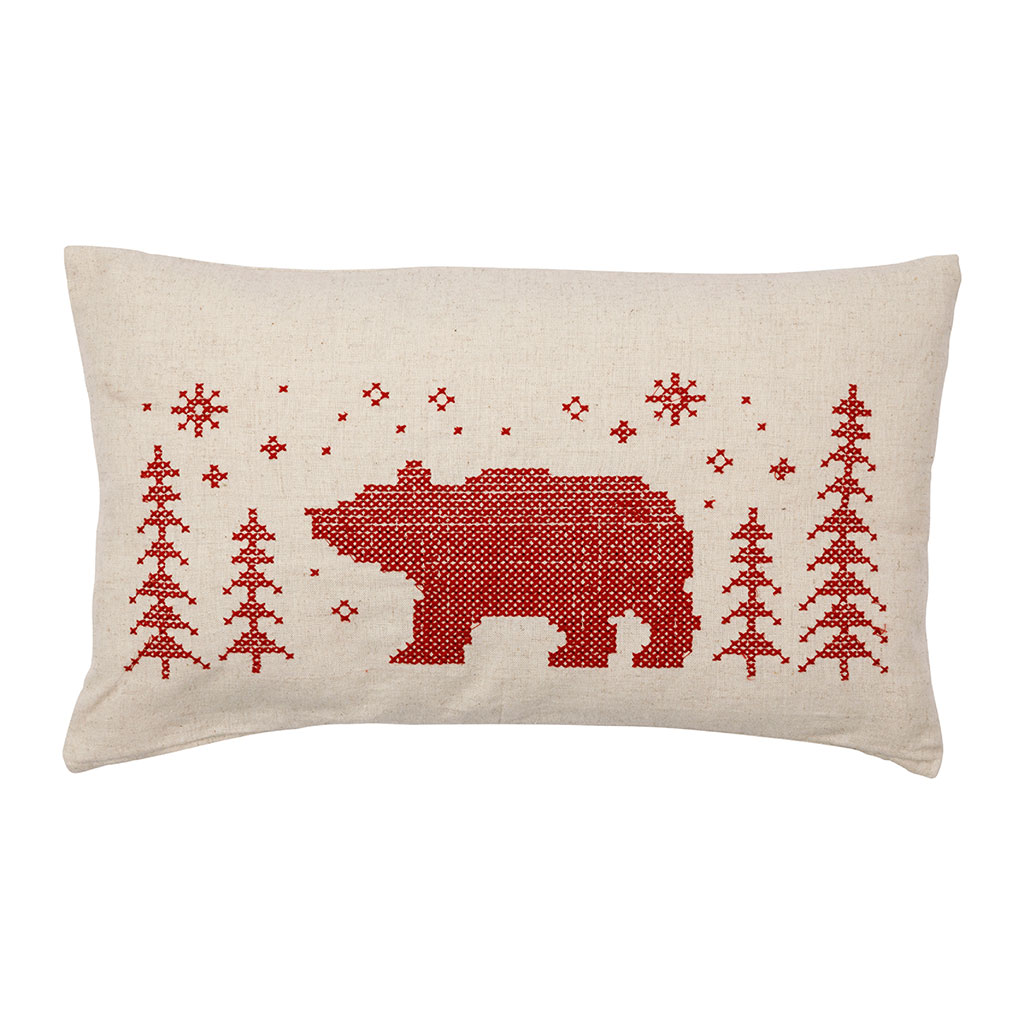 Apportez une touche montagnarde et pleine de charme à votre intérieur avec cette housse de coussin au motif ours brodé.