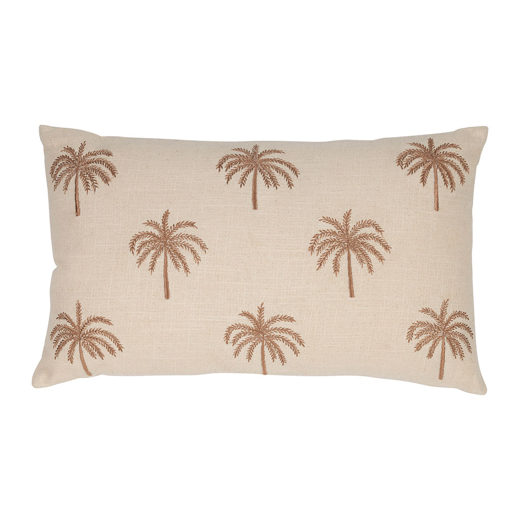 Le coton écru, doux et naturel, s’accorde avec tous les styles de décoration, tandis que les palmiers brodés en fil marron ajoutent un joli contraste et du caractère.