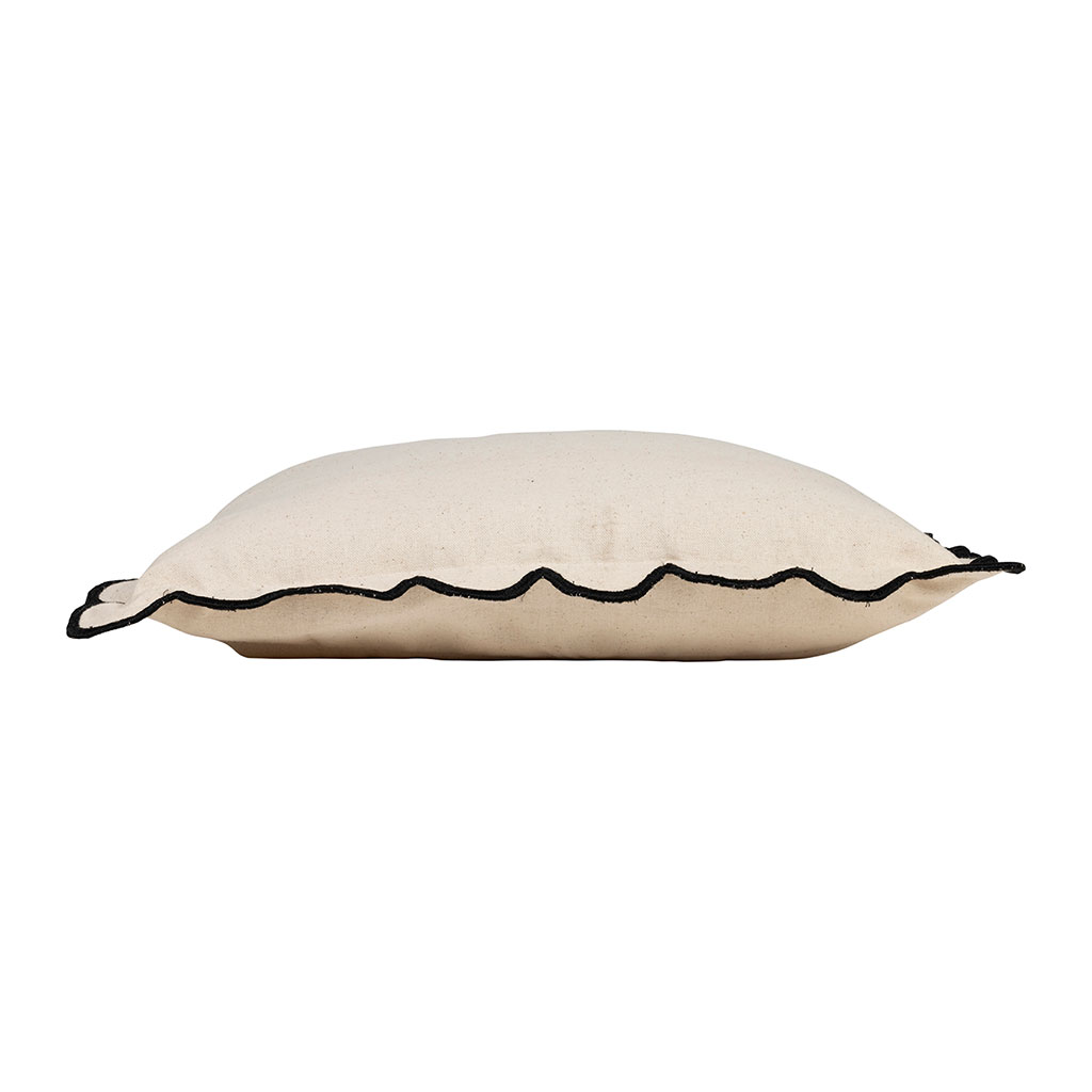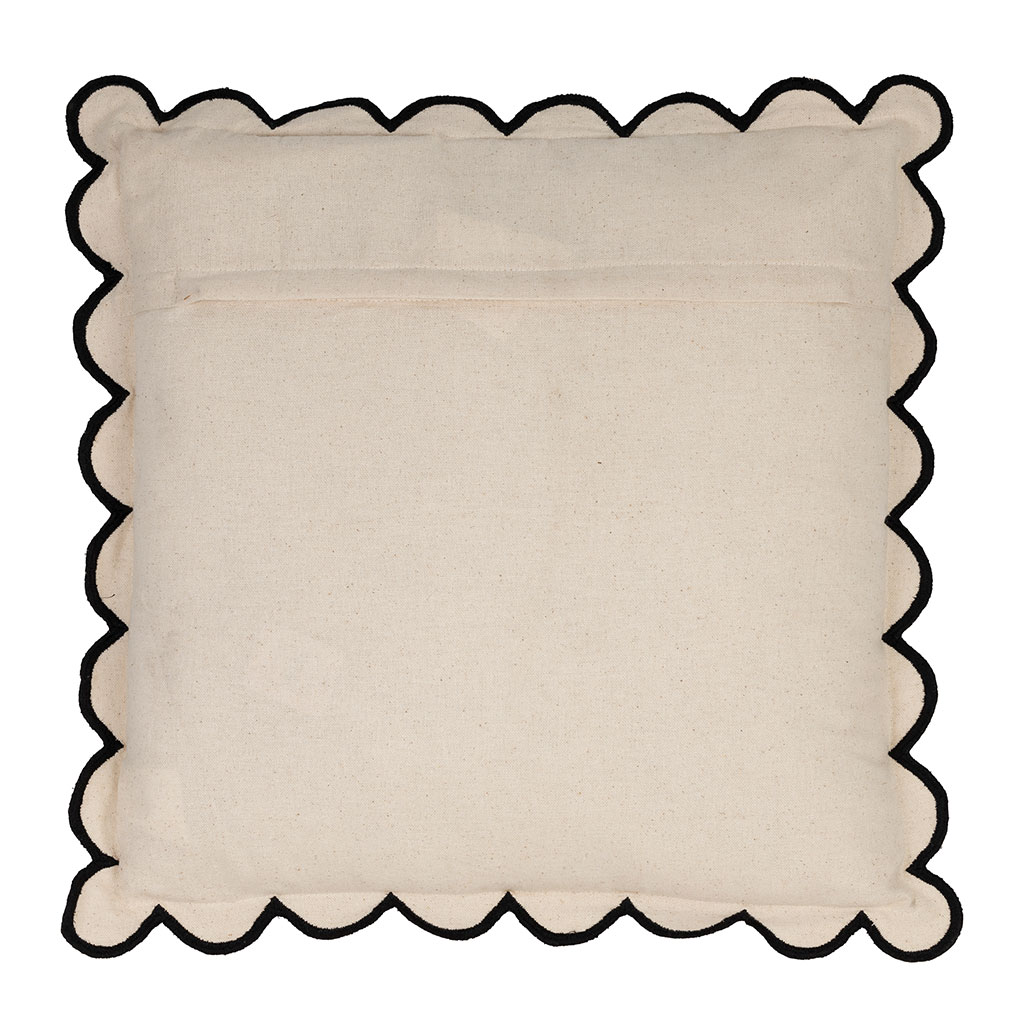Ajoutez une touche de simplicité élégante à votre intérieur avec cette housse de coussin en coton écru bordée de contours festonnés noirs.