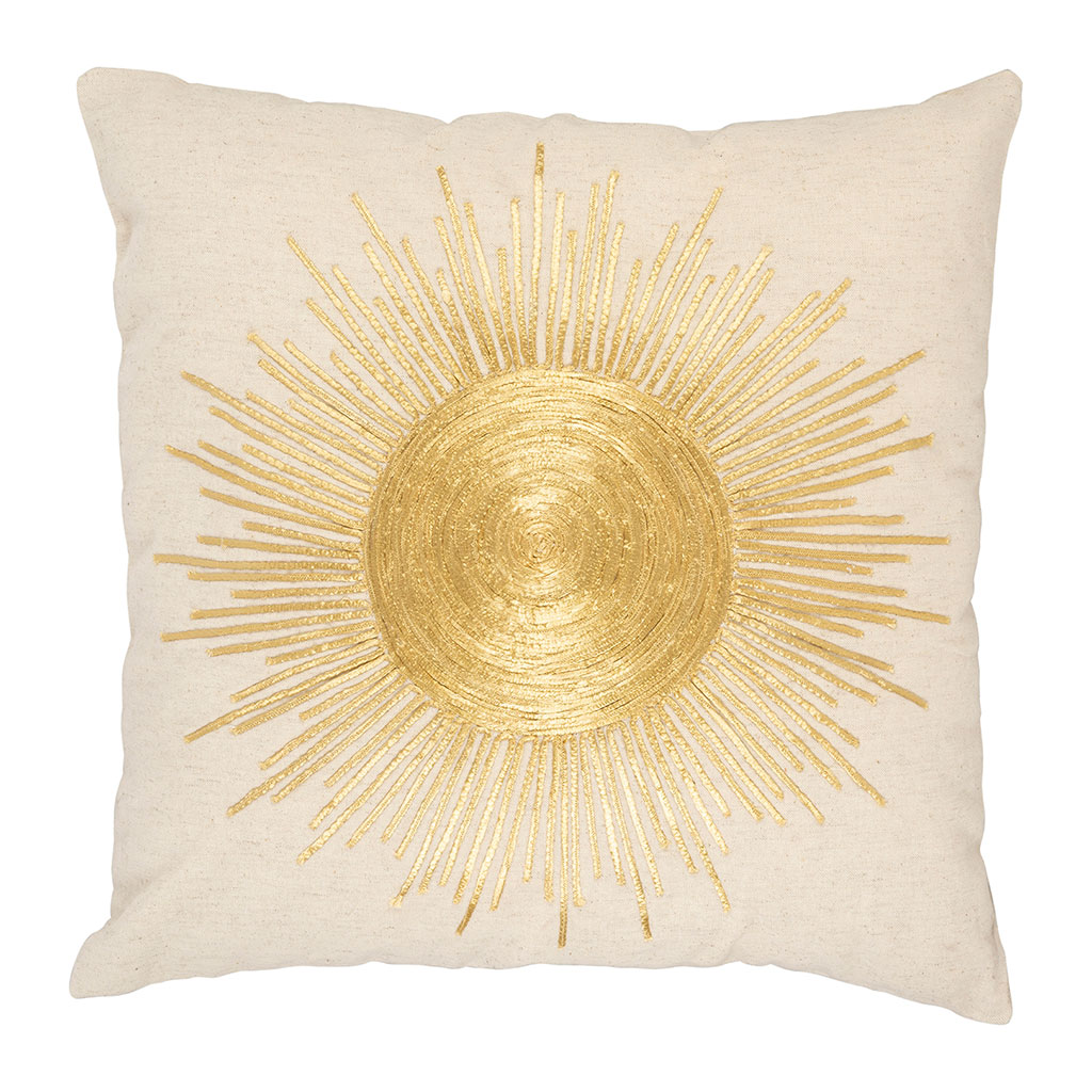 Ajoutez une ambiance estivale et ensoleillée à votre espace de vie avec notre coussin en coton et lin blanc 45x45cm - Soleil.