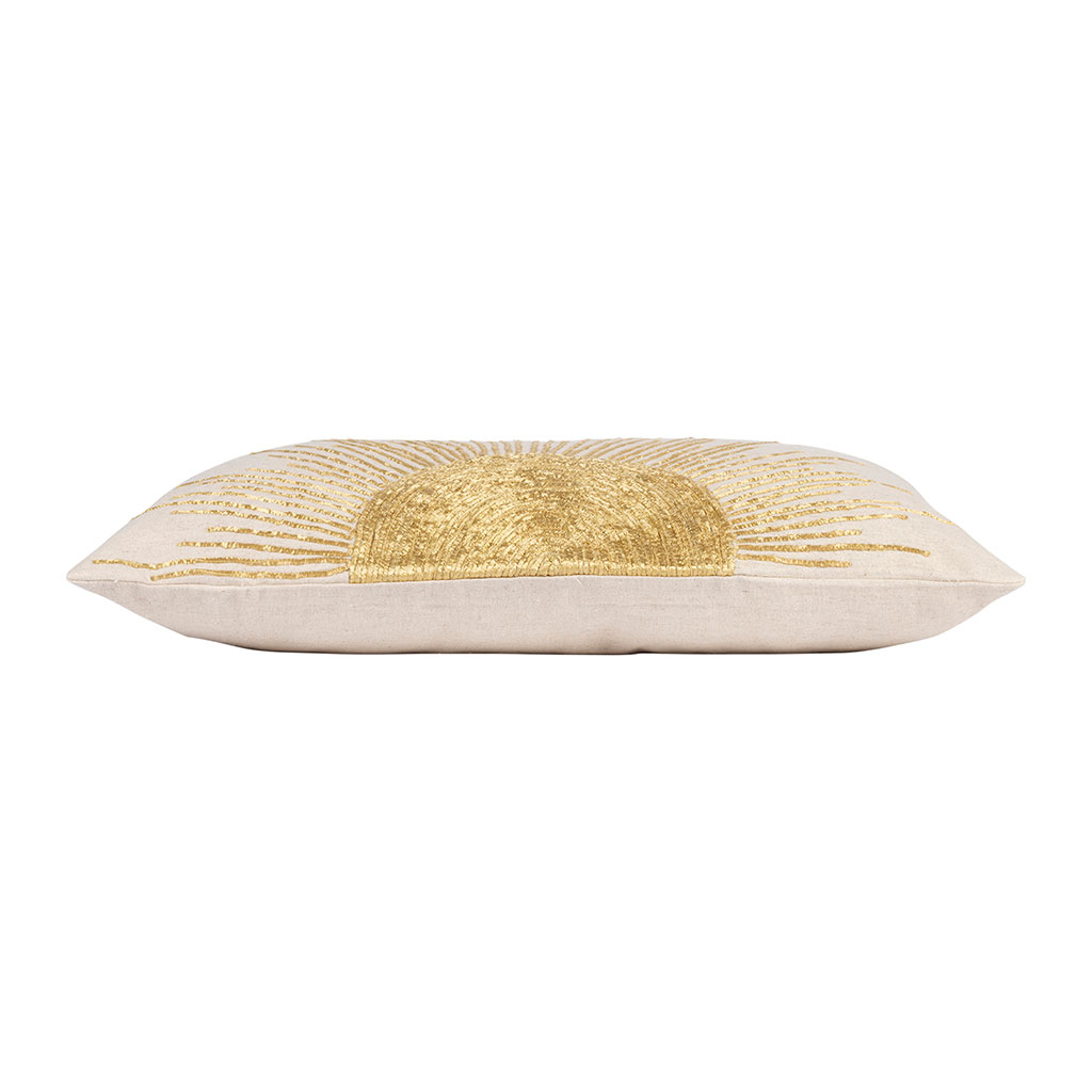 Découvrez notre magnifique coussin en coton et lin blanc de 50x30cm, orné d'un motif ensoleillé.