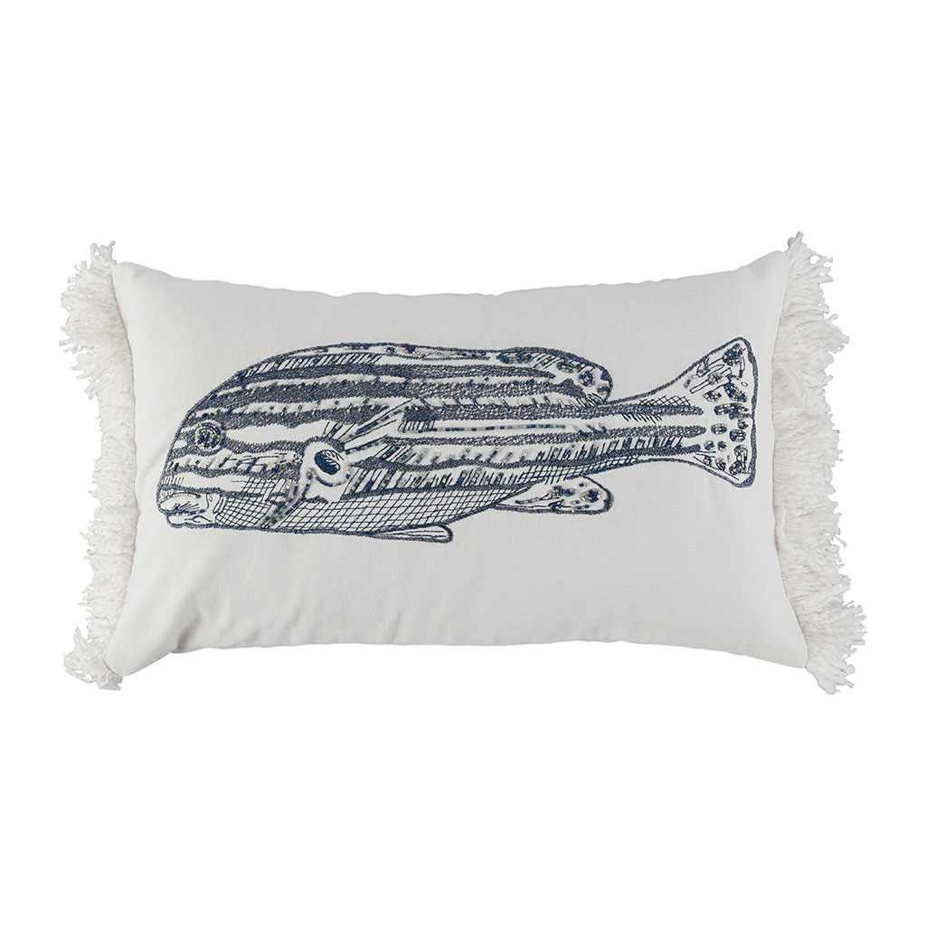 05 56 69 68 67-contact@fabriquedestyles.frHousse de coussin en coton poisson bleu marine 50x30cm - Bord De Mer