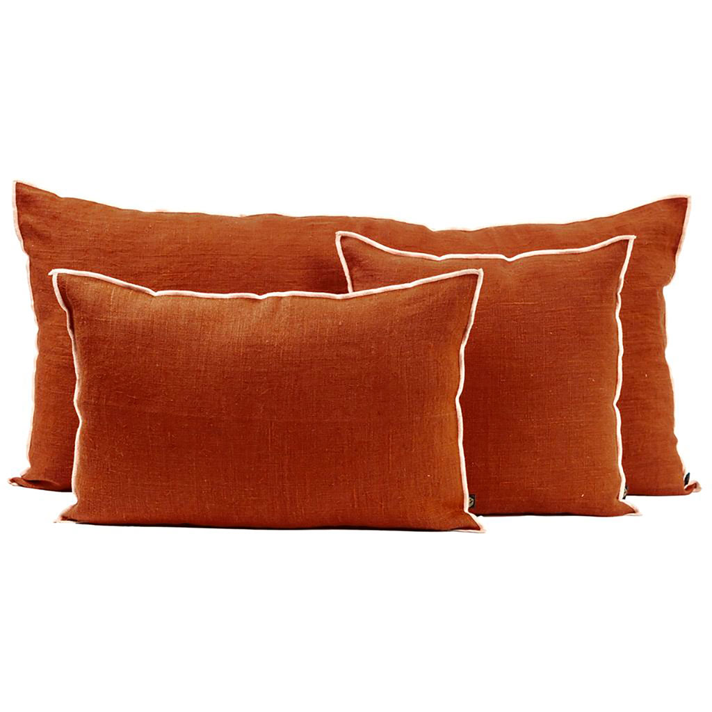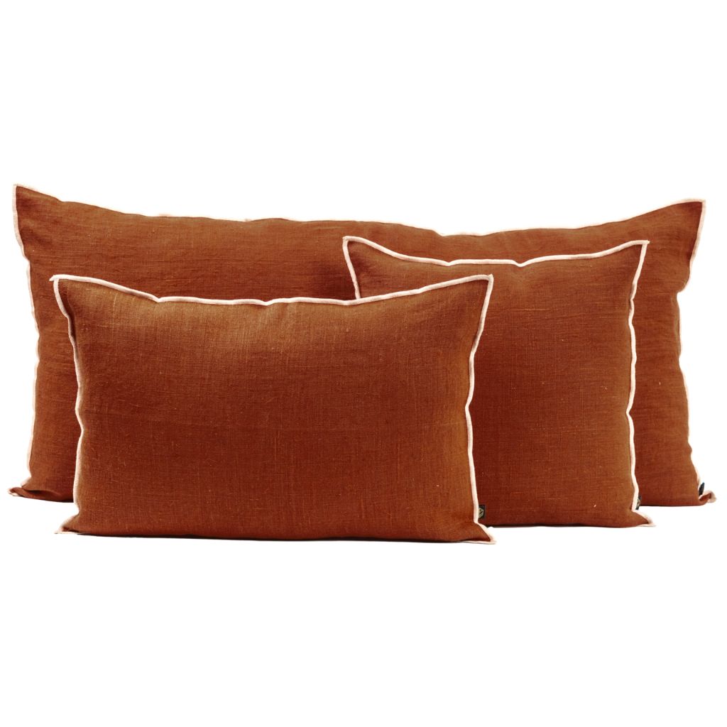 Ajoutez une touche de couleur chaleureuse à votre espace avec cette housse de coussin en lin de teinte brique.