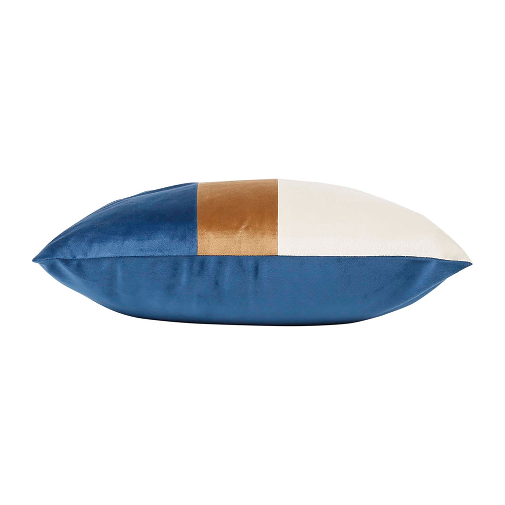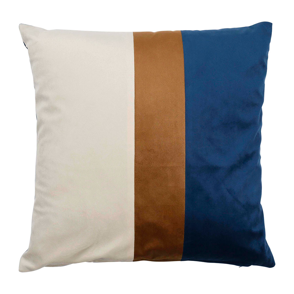 05 56 69 68 67-contact@fabriquedestyles.frHousse de coussin en velours bleu et camel 45x45cm - Mocoa