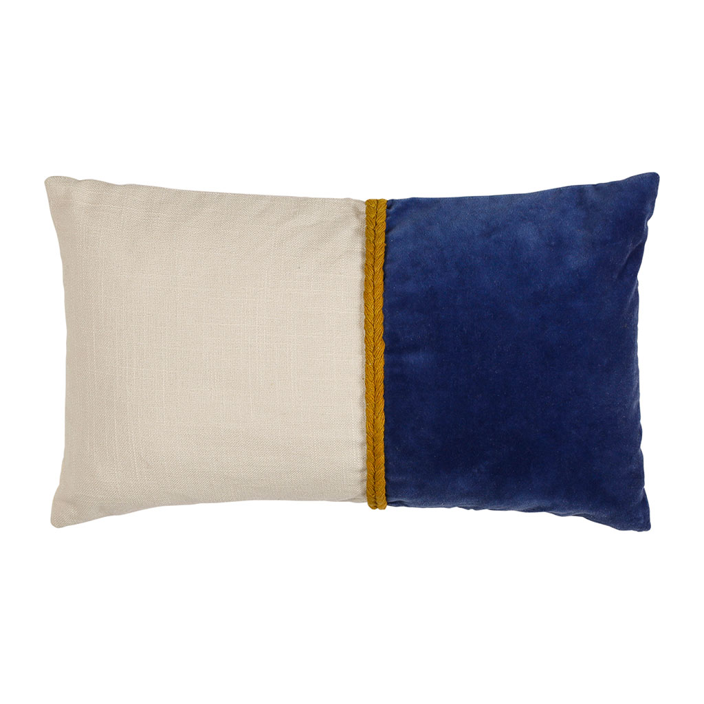 05 56 69 68 67-contact@fabriquedestyles.frHousse de coussin en velours coton indigo et écru 50x30cm - Neo