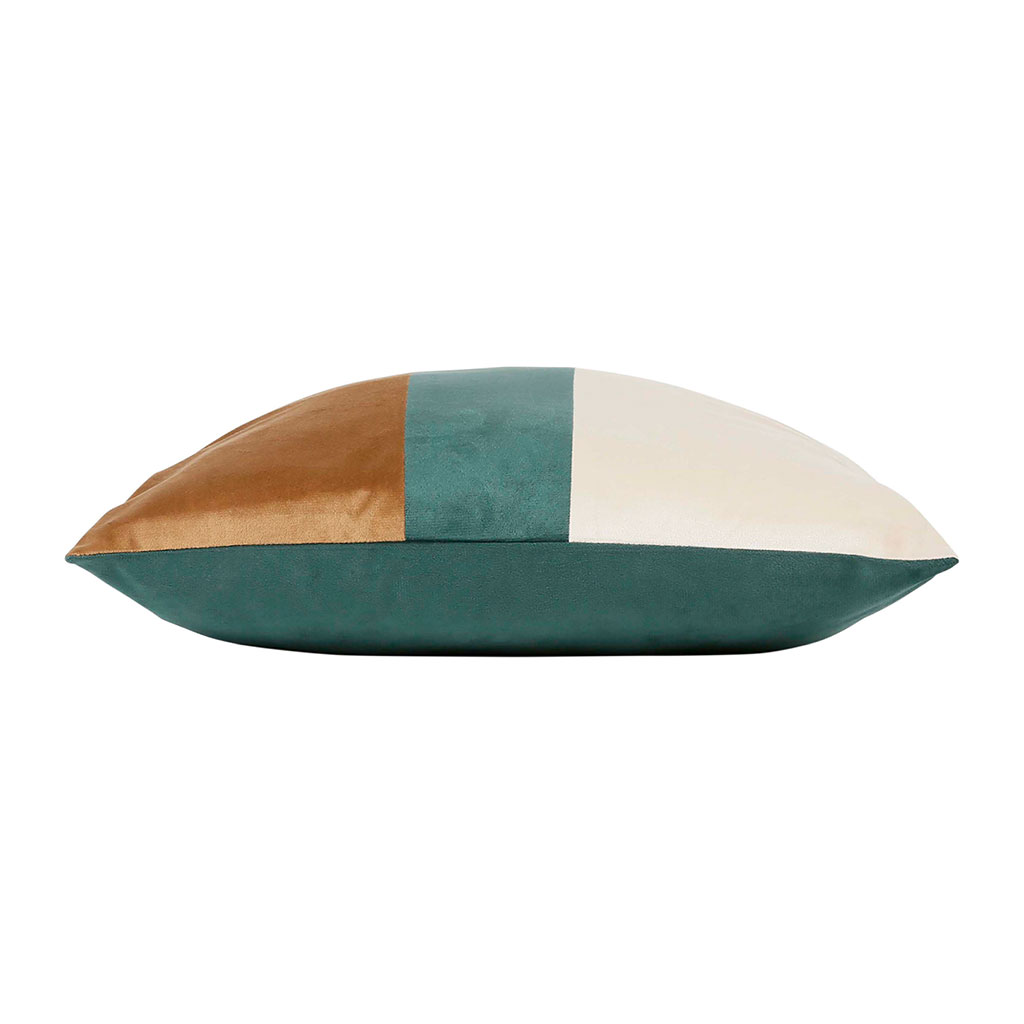 05 56 69 68 67-contact@fabriquedestyles.frHousse de coussin en velours émeraude et camel 45x45cm - Mocoa