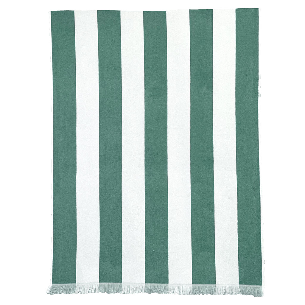 Découvrez notre drap de plage rayé dans une teinte rafraîchissante de jade, mesurant 90x170 cm.