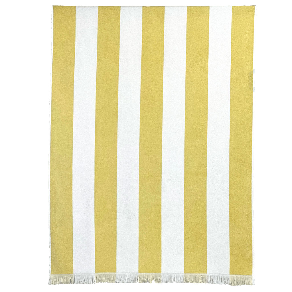 Découvrez un accessoire estival incontournable : notre drap de plage rayé en coton paille 90x170 cm.