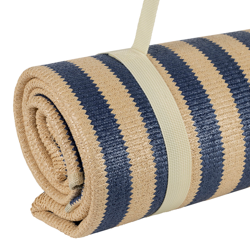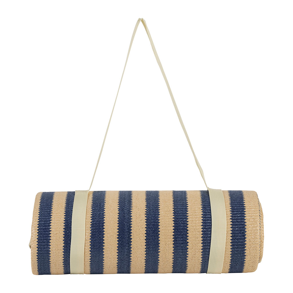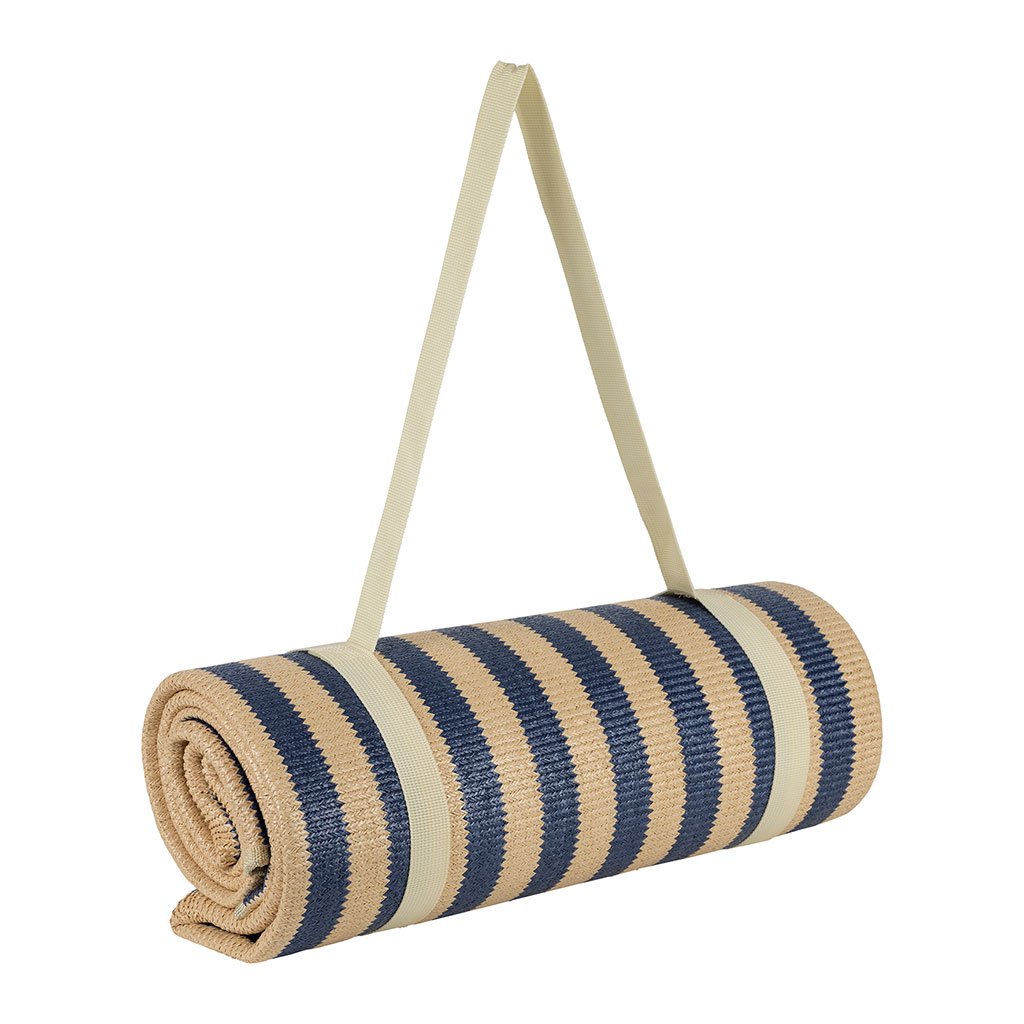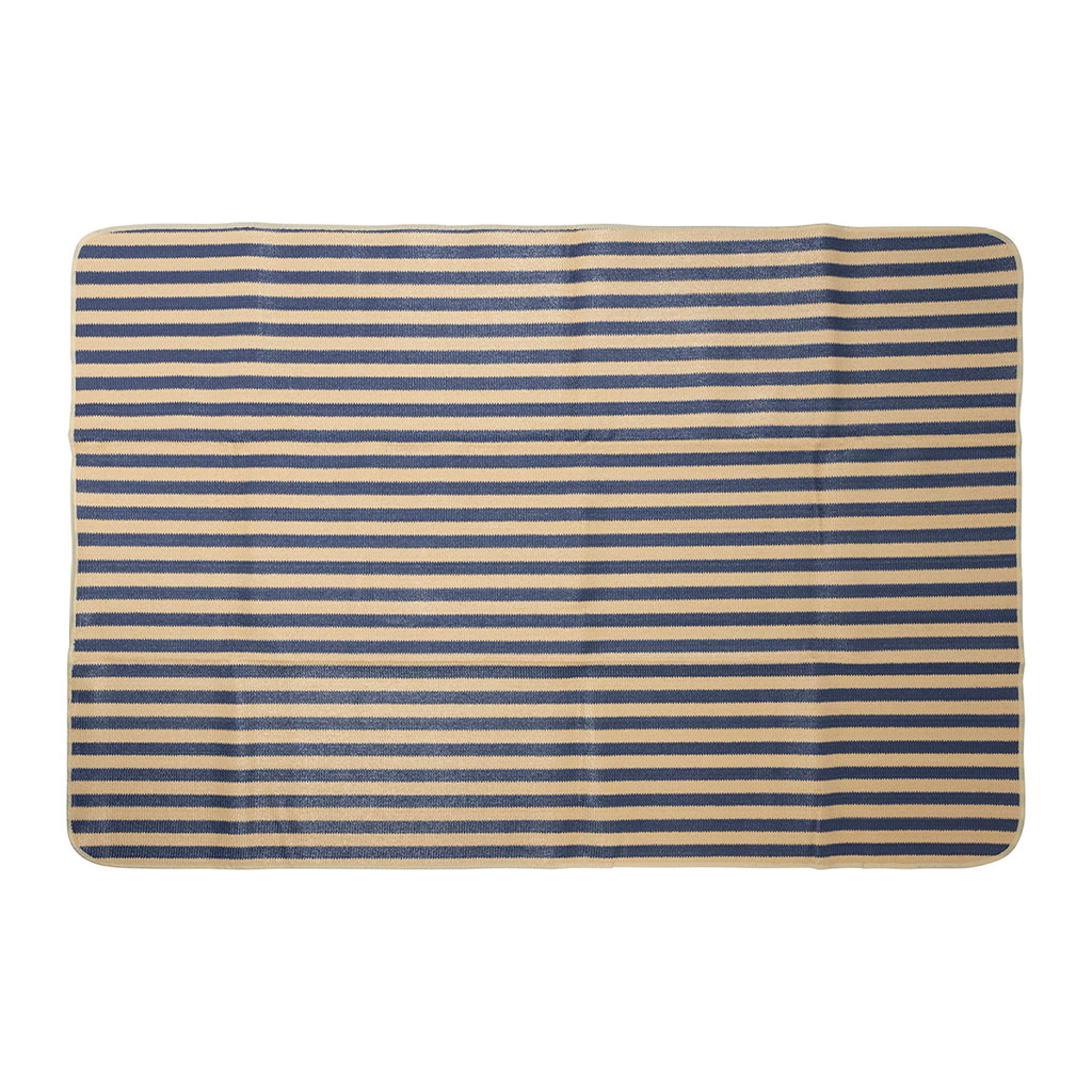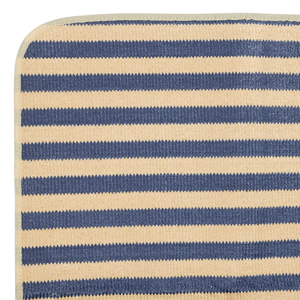 05 56 69 68 67-contact@fabriquedestyles.frTapis de plage en tissu rayé indigo et naturel 180x120cm - Medi