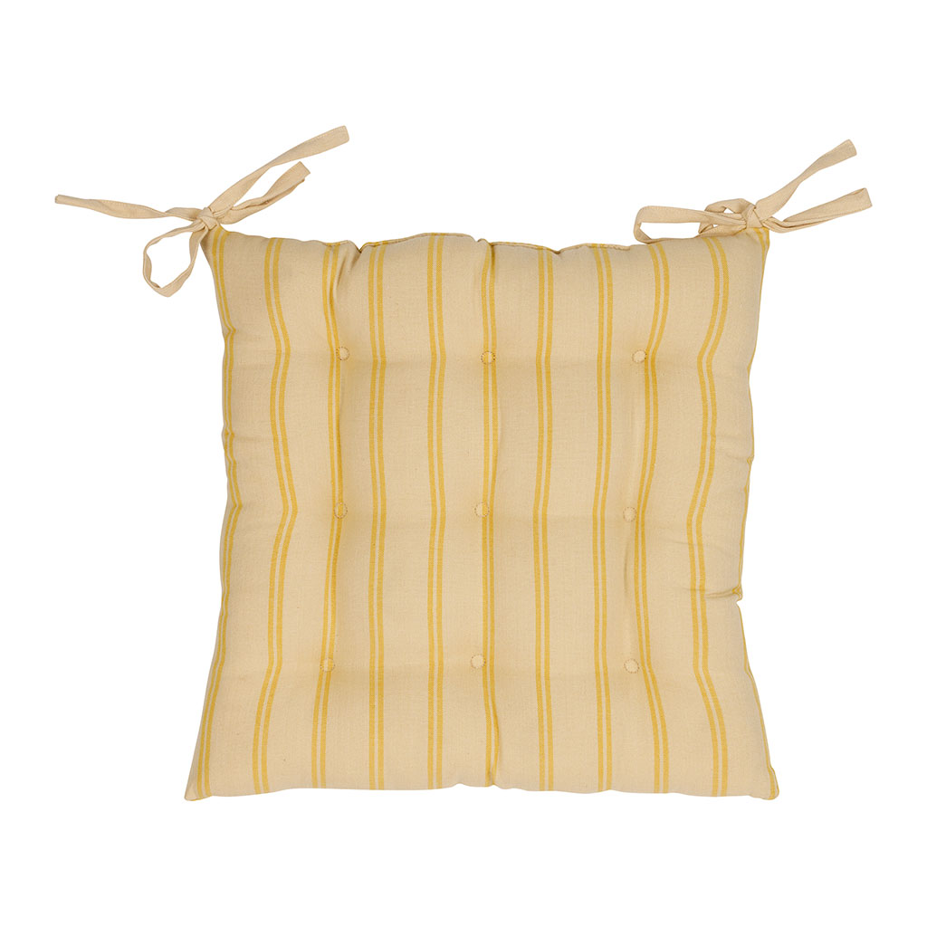 05 56 69 68 67-contact@fabriquedestyles.frGalette de chaise rayée en coton jaune 40x40cm - Campagne