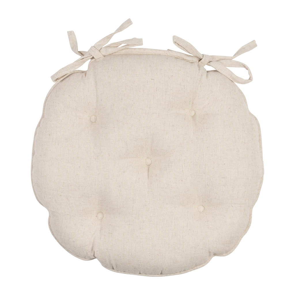 05 56 69 68 67-contact@fabriquedestyles.frGalette de chaise ronde en coton beige d40cm - Lucile