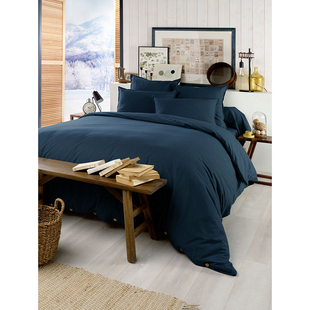 Pratique et esthétique, cette housse de couette allie confort et style avec sa teinte bleu nuit qui apporte une atmosphère sereine à votre espace de repos.