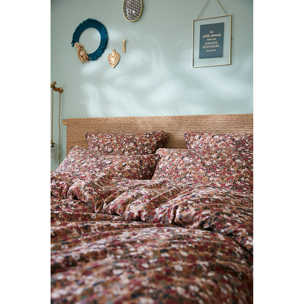 Découvrez notre Taie d'oreiller en gaze de coton imprimée camel 60x60cm - Capucine, un choix parfait pour ajouter une touche de style à votre chambre à coucher.