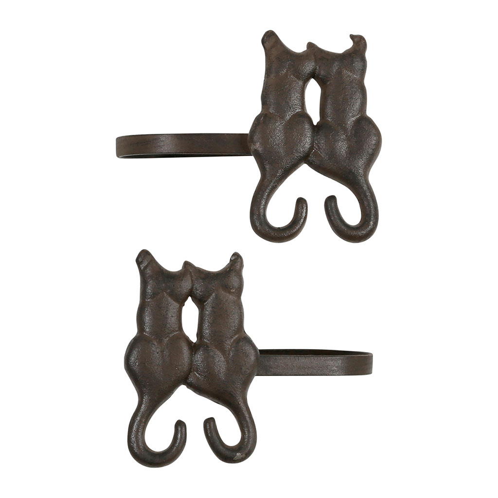Lot de 2 paires d'embrasse chat accessoire rideau en fonte brun