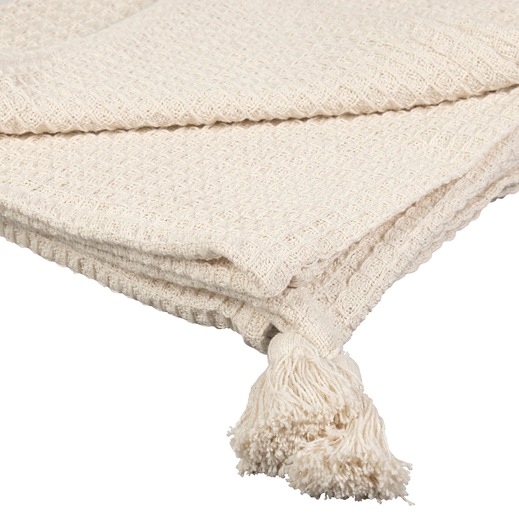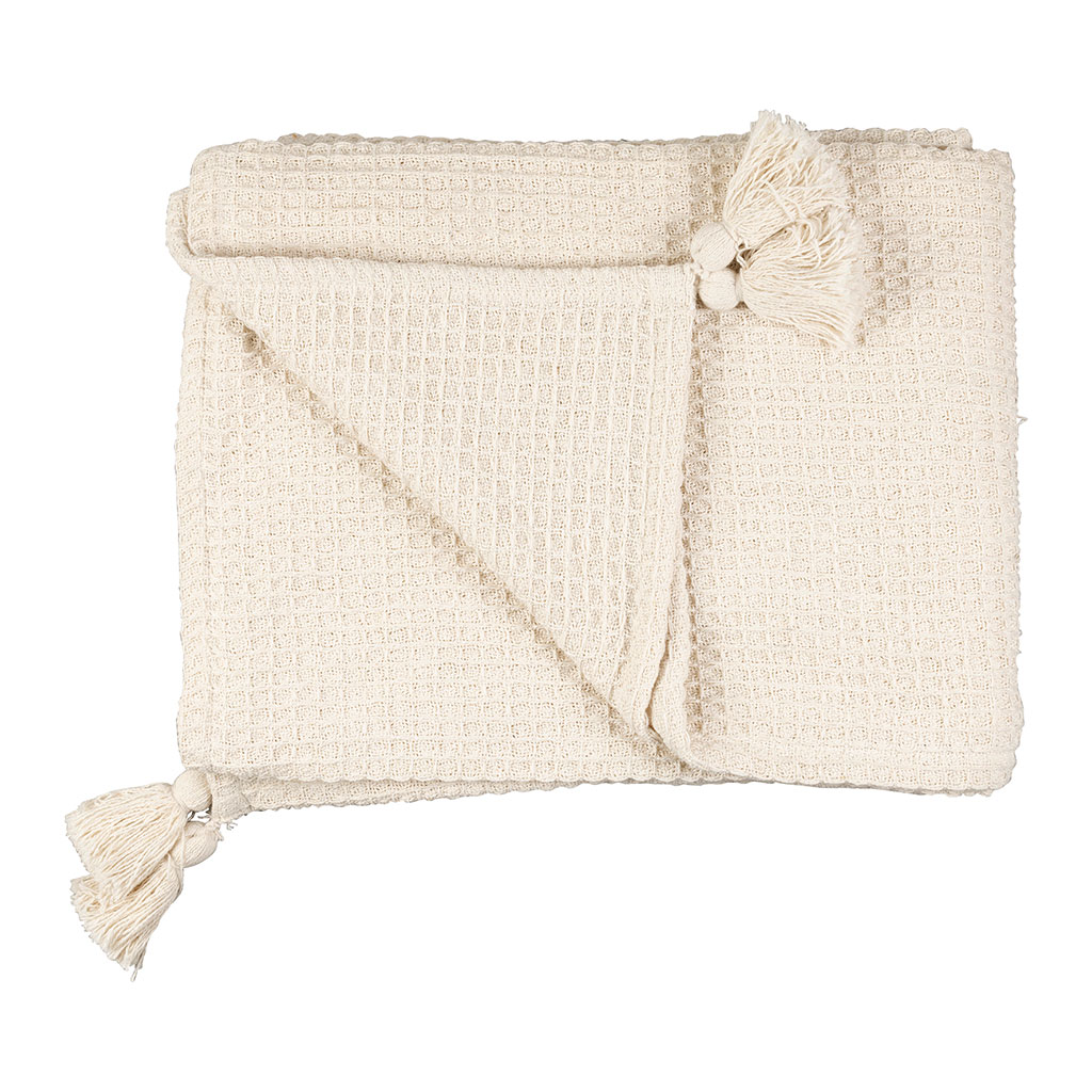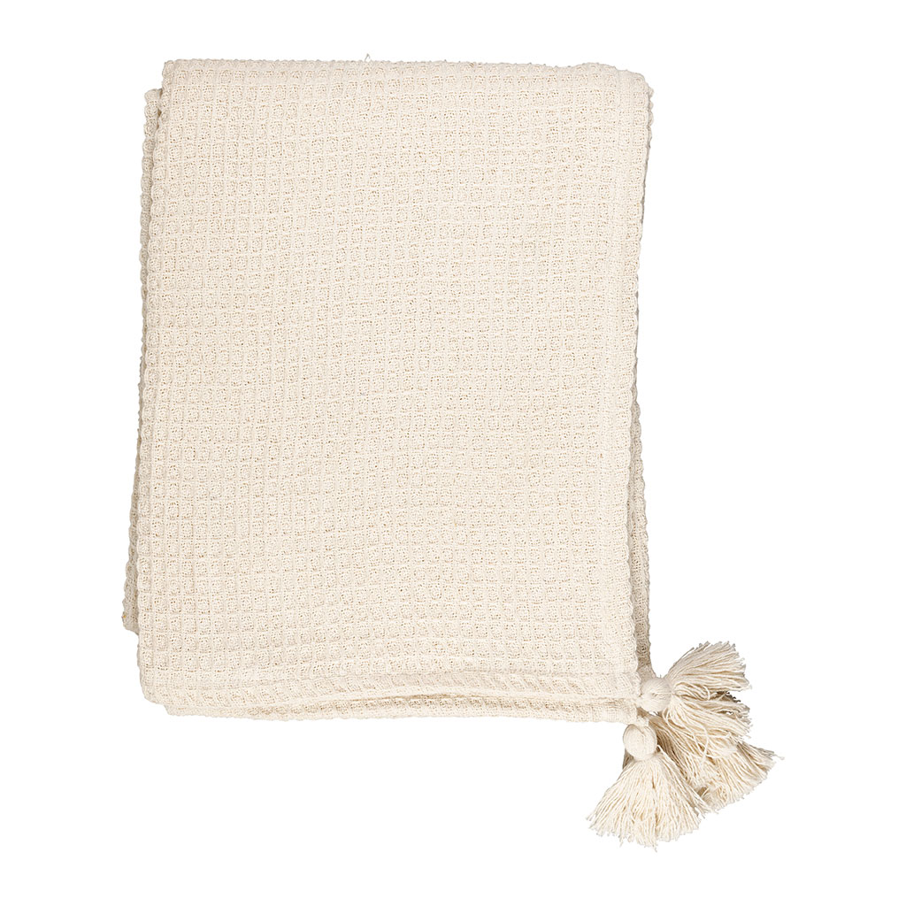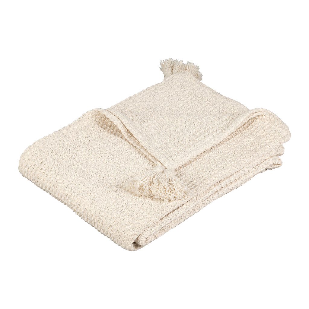05 56 69 68 67-contact@fabriquedestyles.frPlaid en coton nid d'abeille ecru 170x130cm - Beezz